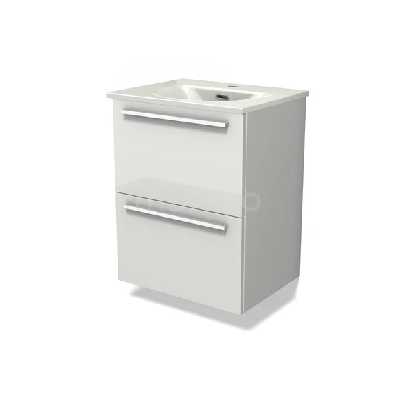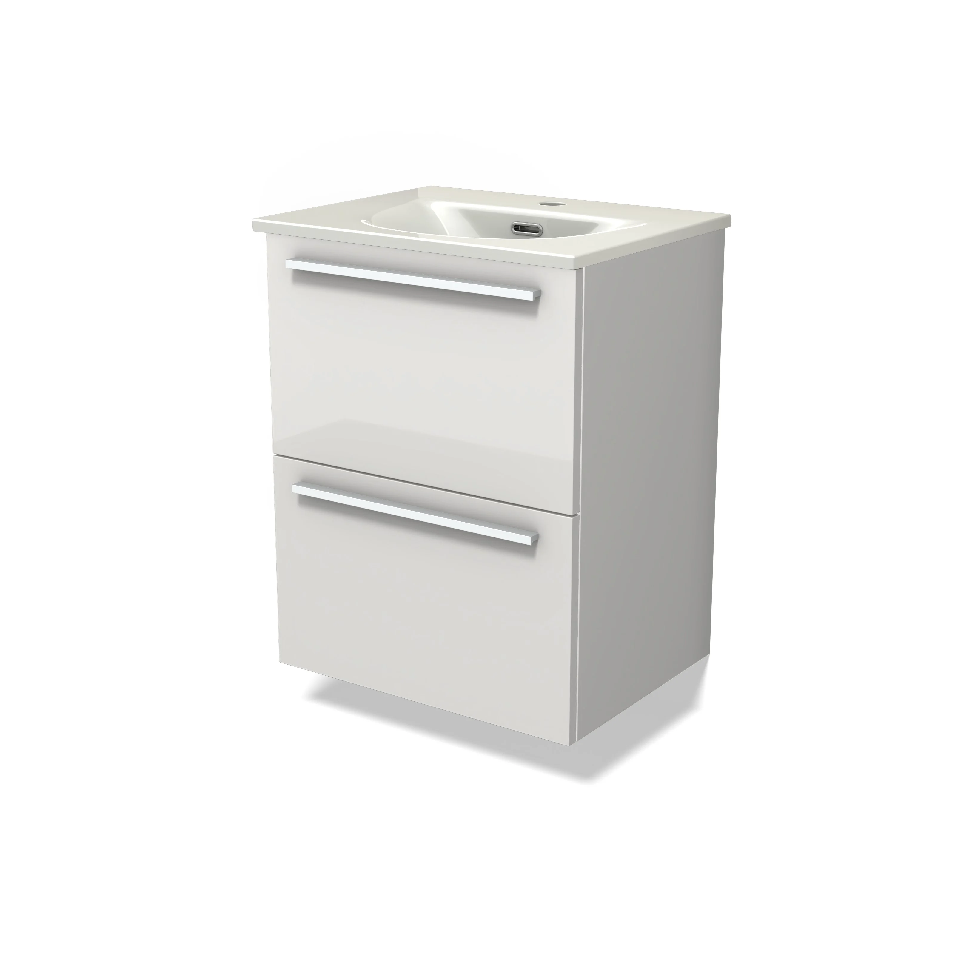 Modulo Slim Waschtische | 50 cm Hochglanz Weiß Flach front Keramik 2 übereinanderliegende Schubladen