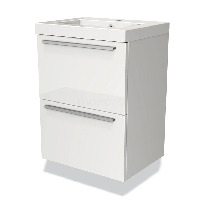 Modulo Slim Waschtische | 50 cm Hochglanz Weiß Flach front Mineralguss 2 übereinanderliegende Schubladen