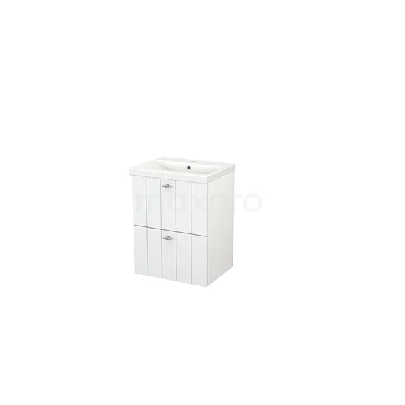 Modulo+ Slim Waschtische | 50 cm Hochglanz Weiß Lamelle front Keramik 2 übereinanderliegende Schubladen