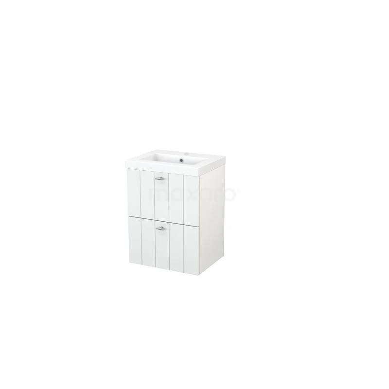 Modulo+ Slim Waschtische | 50 cm Hochglanz Weiß Lamelle front Mineralguss 2 übereinanderliegende Schubladen