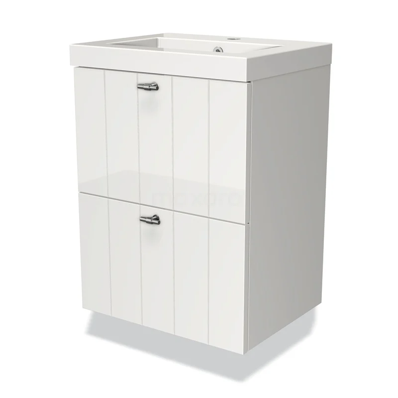 Modulo Slim Waschtische | 50 cm Hochglanz Weiß Lamelle front Mineralguss 2 übereinanderliegende Schubladen