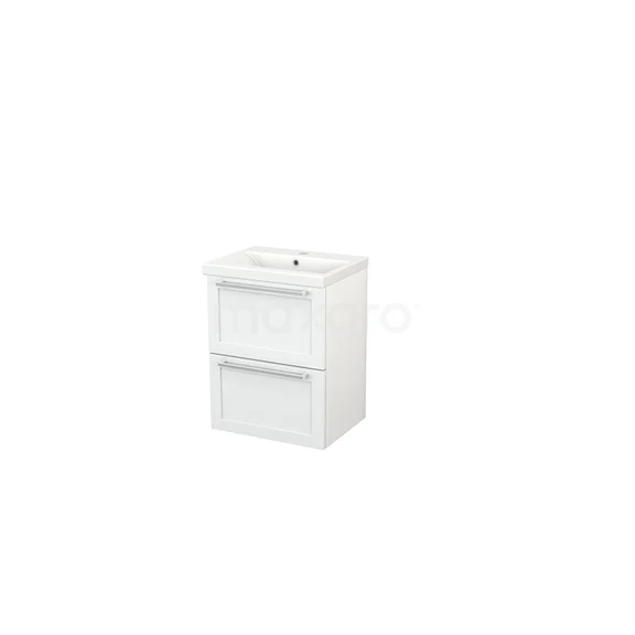 Modulo+ Slim Waschtische | 50 cm Hochglanz Weiß Rahmen front Keramik 2 übereinanderliegende Schubladen