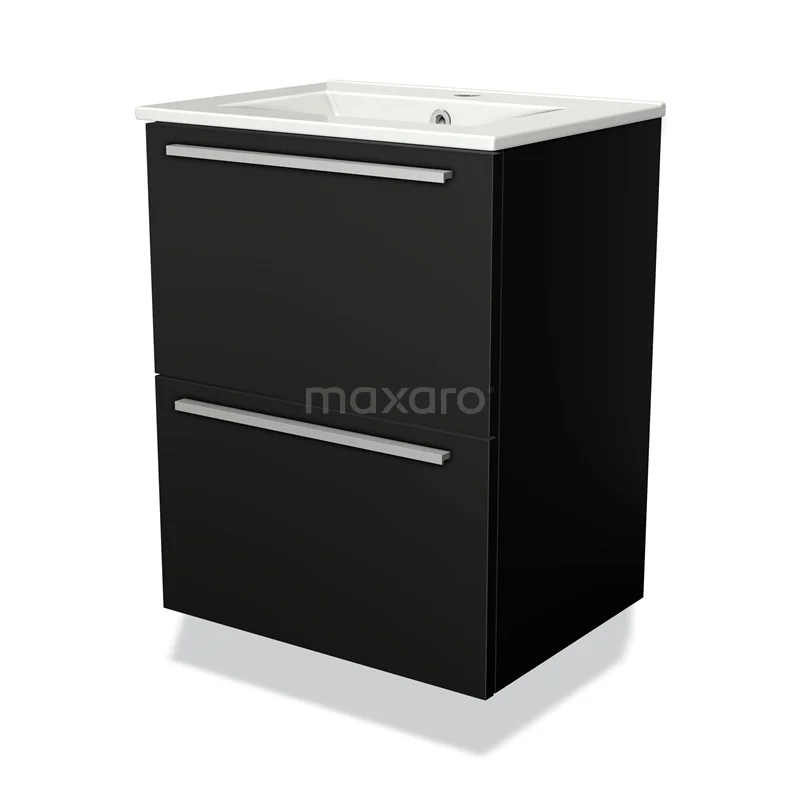 Modulo Slim Waschtische | 50 cm Matt Schwarz Flach front Keramik 2 übereinanderliegende Schubladen
