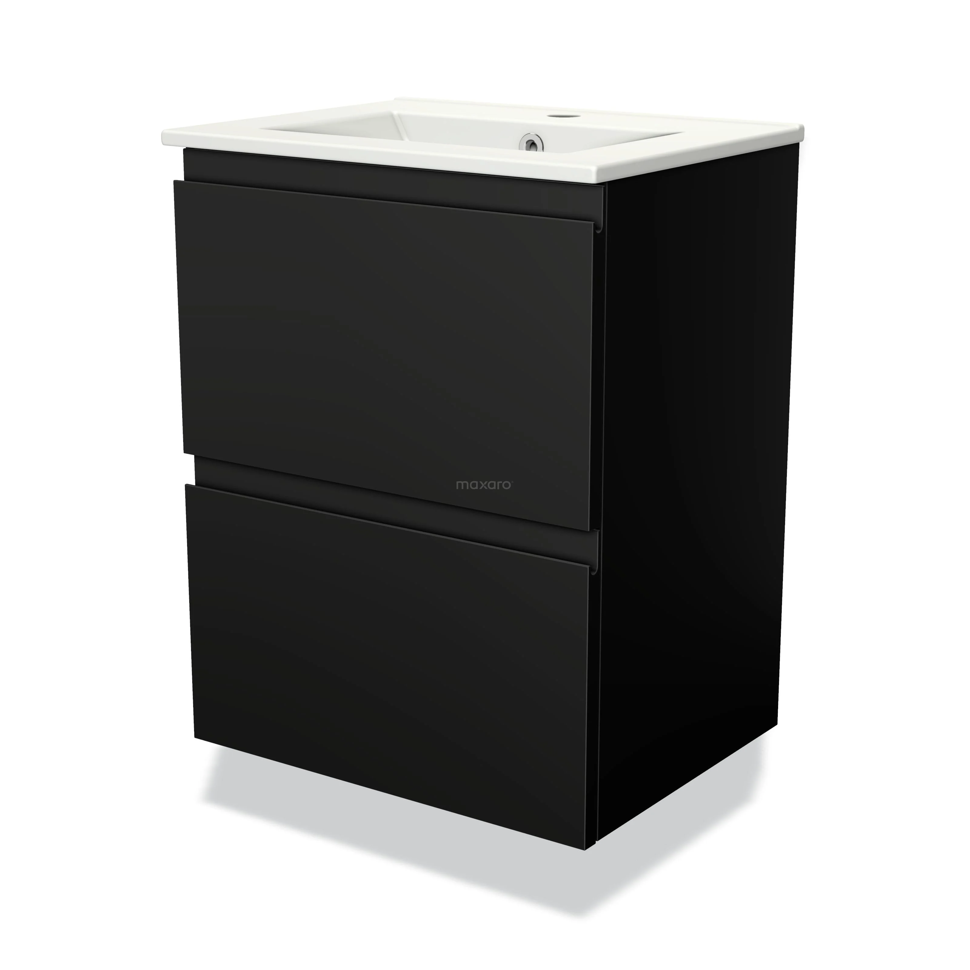 Modulo Slim Waschtische | 50 cm Matt Schwarz Grifflos front Keramik 2 übereinanderliegende Schubladen