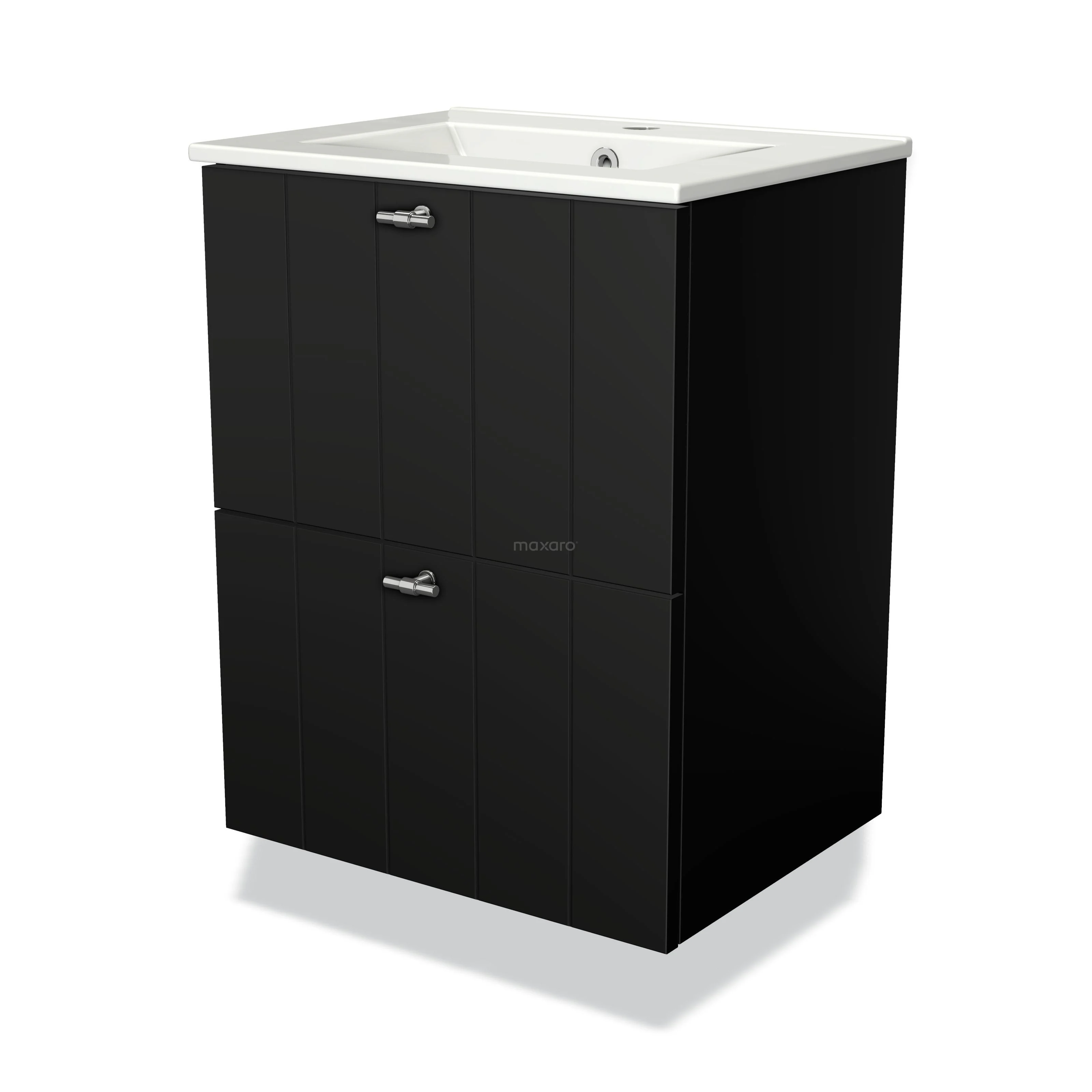 Modulo Slim Waschtische | 50 cm Matt Schwarz Lamelle front Keramik 2 übereinanderliegende Schubladen