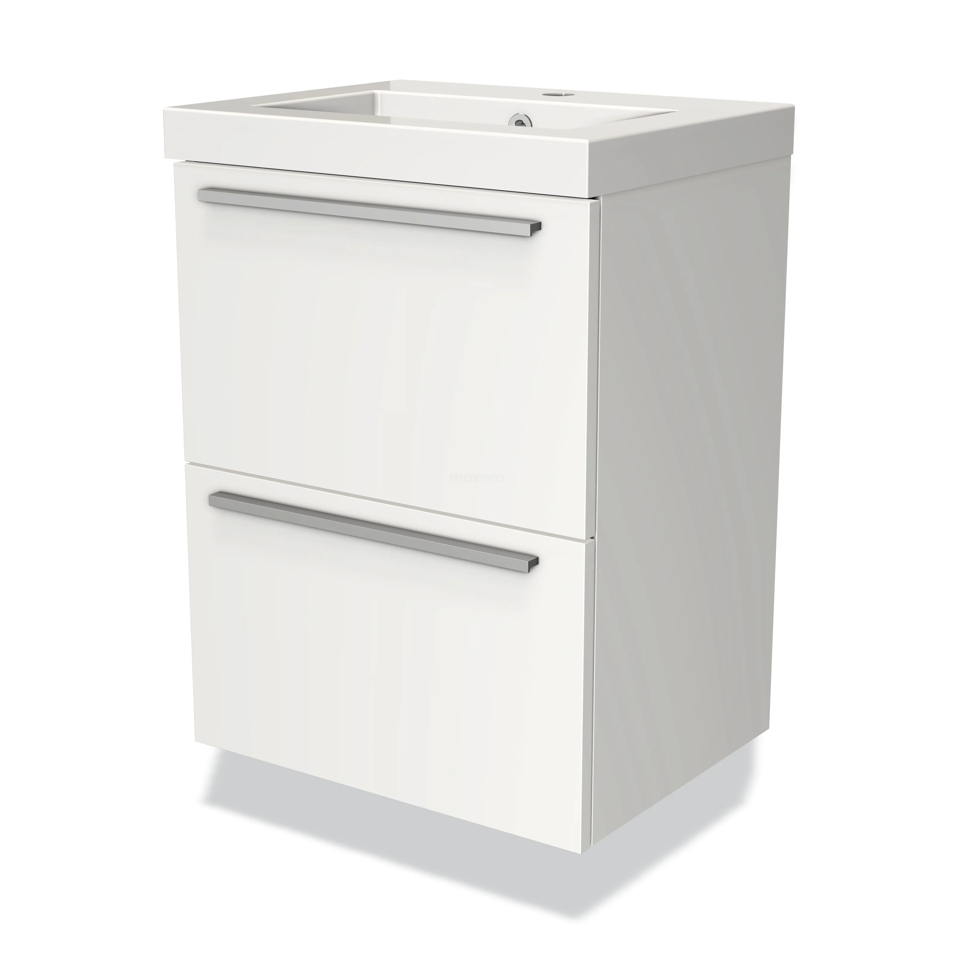 Modulo Slim Waschtische | 50 cm Matt Weiß Flach front Mineralguss 2 übereinanderliegende Schubladen