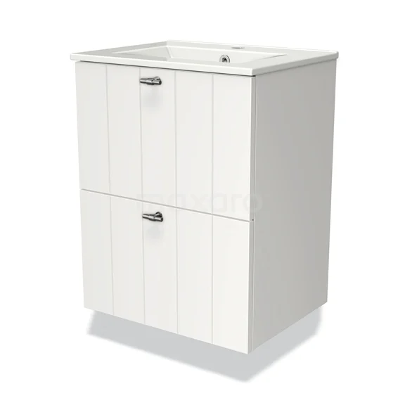 Modulo Slim Waschtische | 50 cm Matt Weiß Lamelle front Keramik 2 übereinanderliegende Schubladen