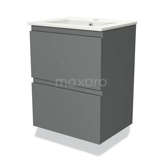 Modulo Slim Waschtische | 50 cm Mittelgrau Grifflos front Keramik 2 übereinanderliegende Schubladen