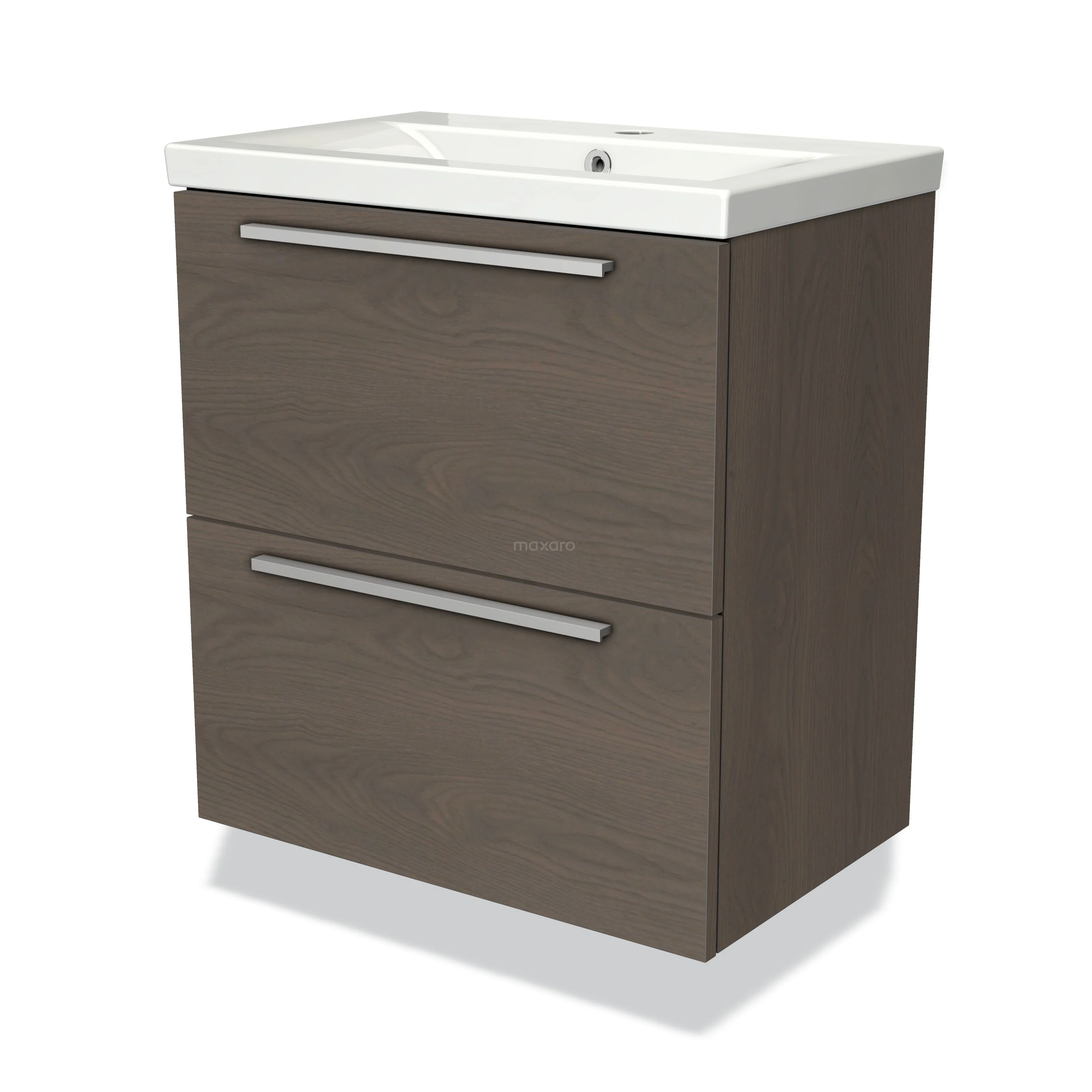 Modulo Slim Waschtische | 60 cm Dunkelbraune Eiche Flach front Keramik 2 übereinanderliegende Schubladen