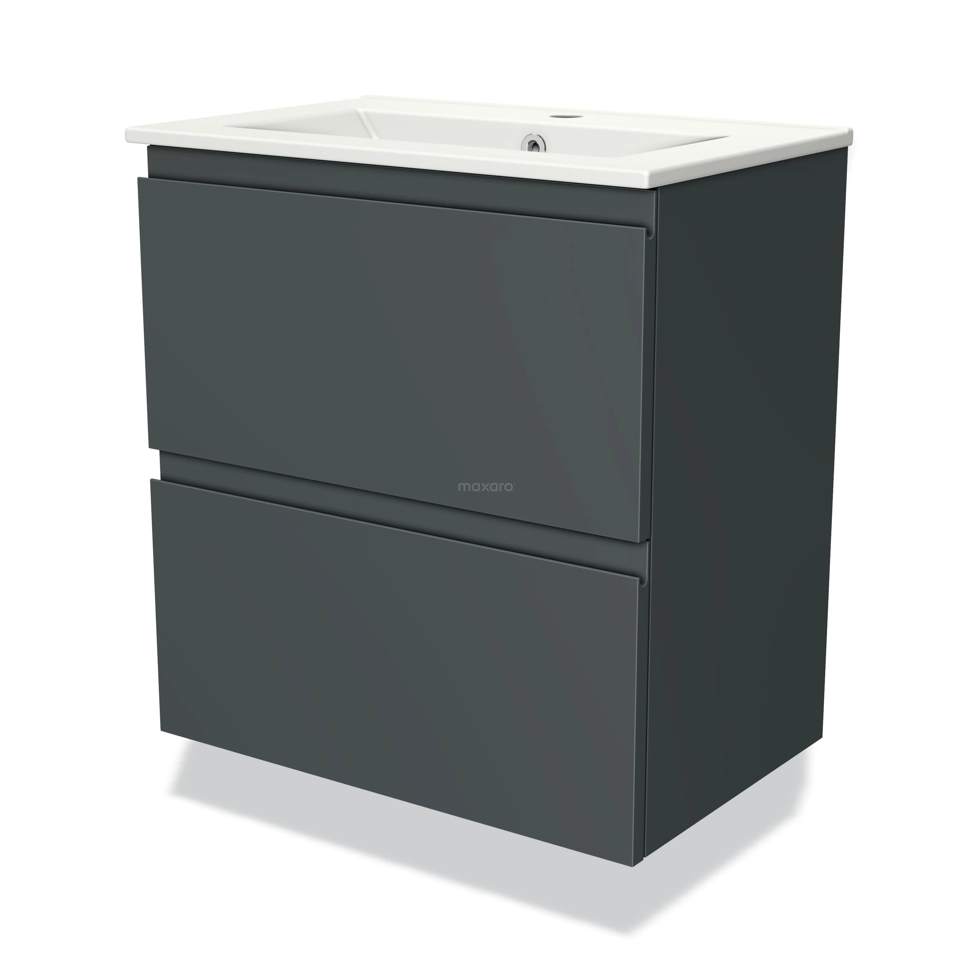 Modulo Slim Waschtische | 60 cm Dunkelgrau Grifflos front Keramik 2 übereinanderliegende Schubladen