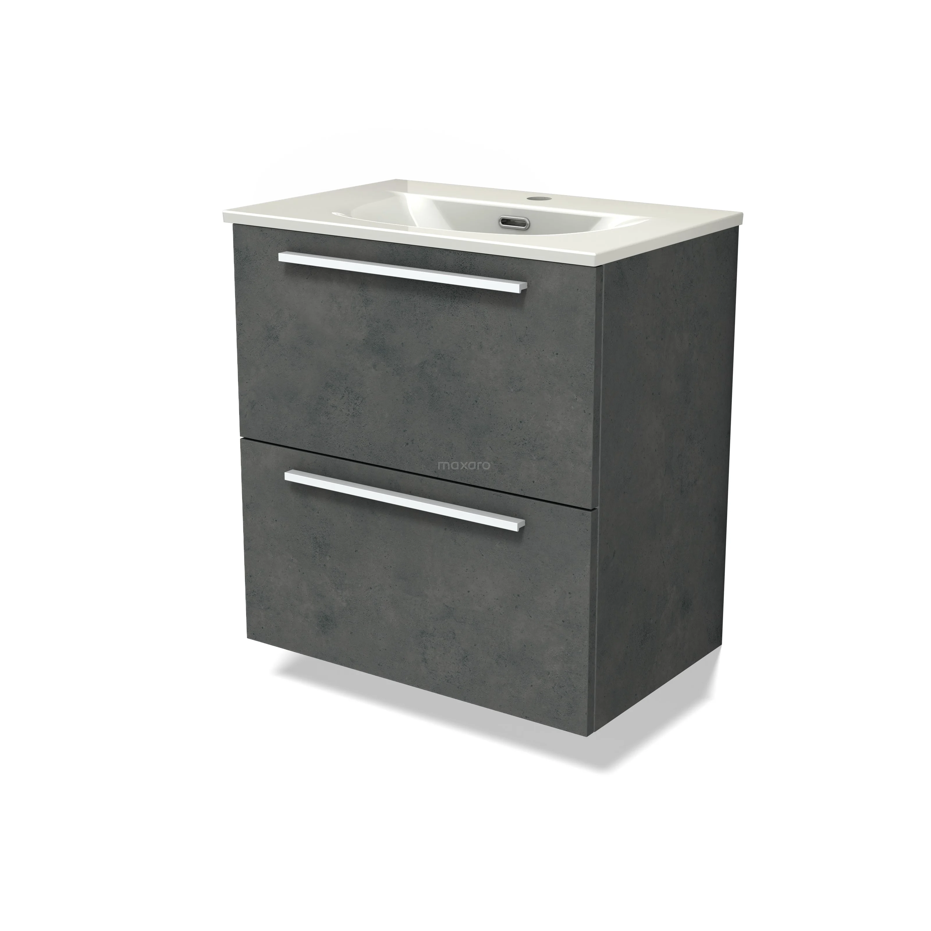 Modulo Slim Waschtische | 60 cm Dunkelgrauer Beton Flach front Keramik 2 übereinanderliegende Schubladen