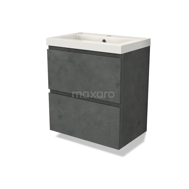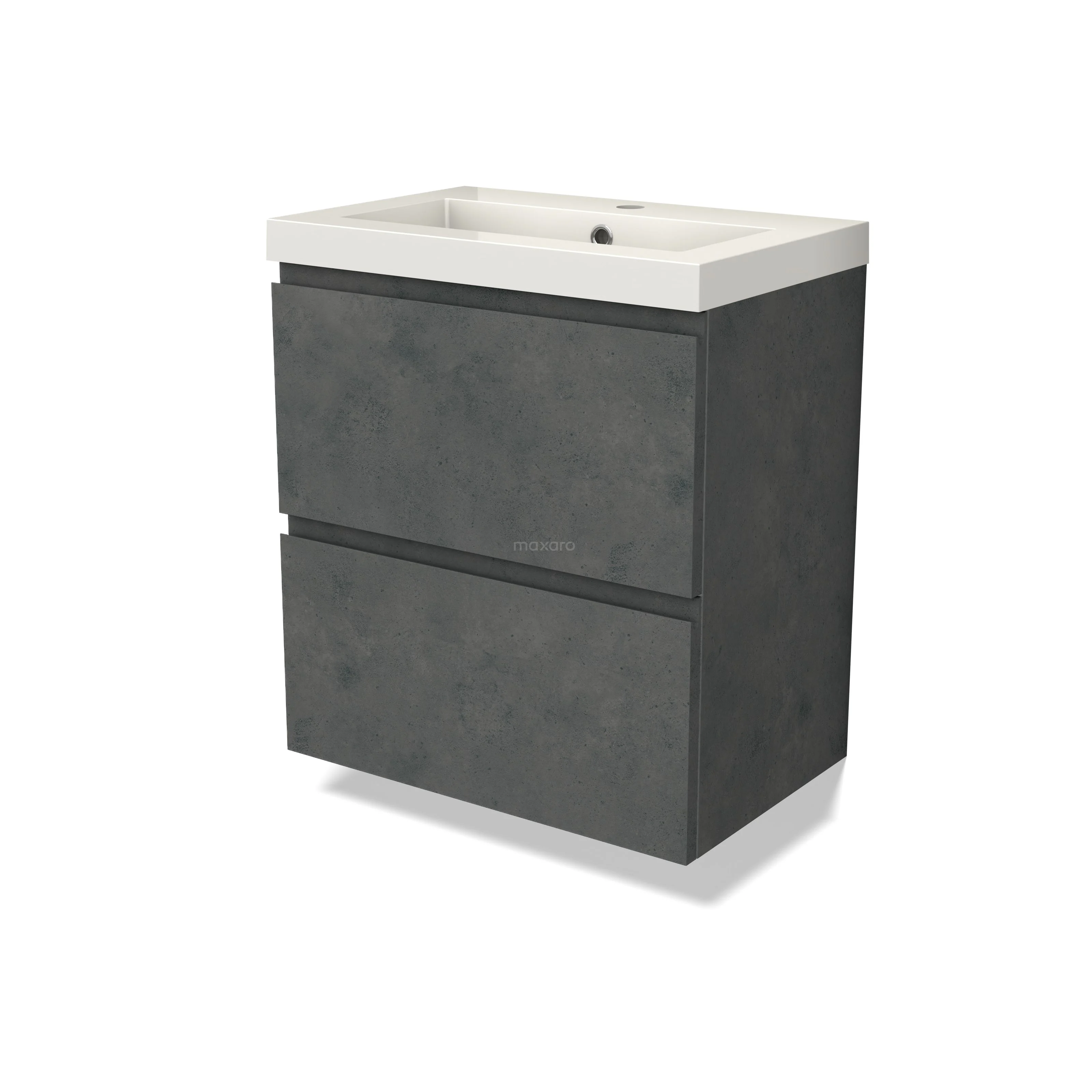 Modulo Slim Waschtische | 60 cm Dunkelgrauer Beton Grifflos front Mineralguss 2 übereinanderliegende Schubladen