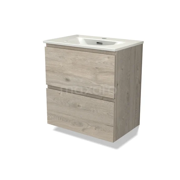 Modulo Slim Waschtische | 60 cm Hellgraue Eiche Grifflos front Keramik 2 übereinanderliegende Schubladen