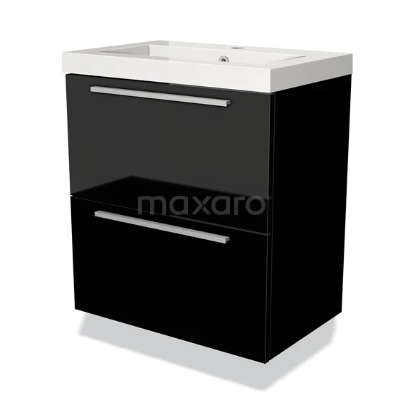 Modulo Slim Waschtische | 60 cm Hochglanz Schwarz Flach front Mineralguss 2 übereinanderliegende Schubladen