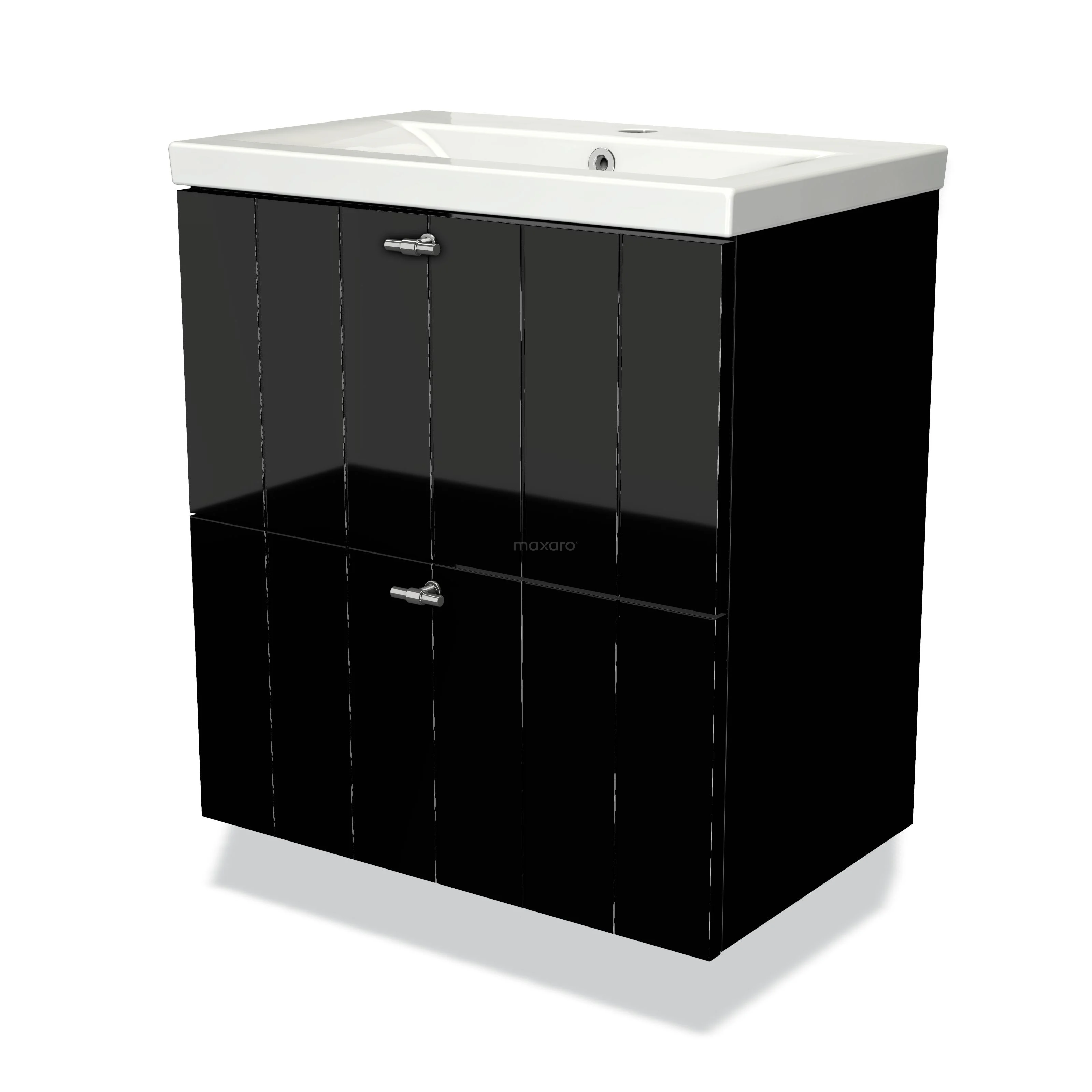 Modulo Slim Waschtische | 60 cm Hochglanz Schwarz Lamelle front Keramik 2 übereinanderliegende Schubladen
