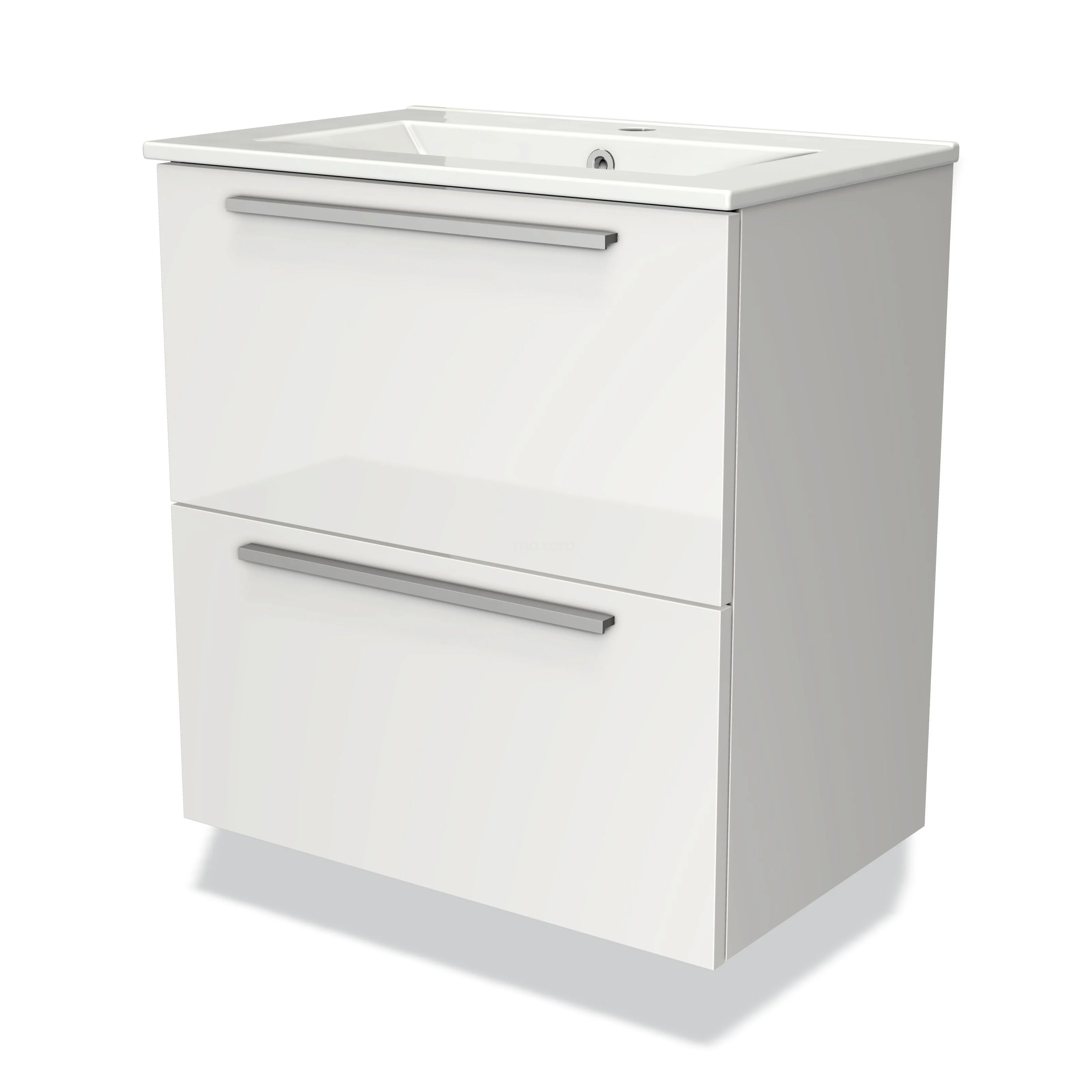 Modulo Slim Waschtische | 60 cm Hochglanz Weiß Flach front Keramik 2 übereinanderliegende Schubladen