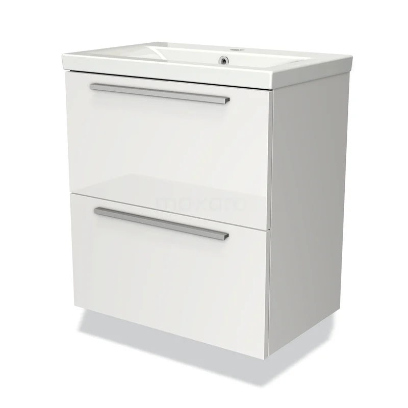 Modulo Slim Waschtische | 60 cm Hochglanz Weiß Flach front Keramik 2 übereinanderliegende Schubladen