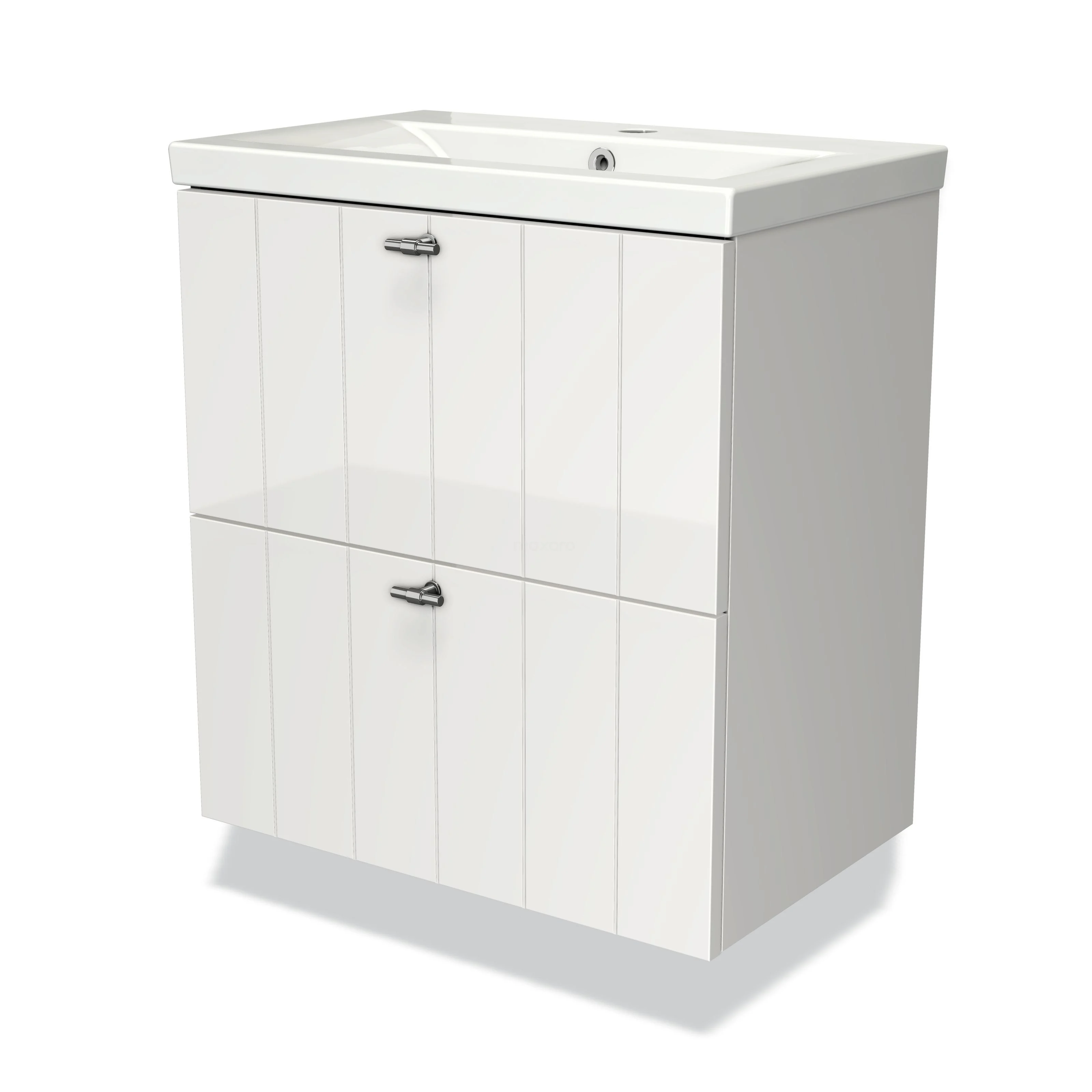 Modulo Slim Waschtische | 60 cm Hochglanz Weiß Lamelle front Keramik 2 übereinanderliegende Schubladen