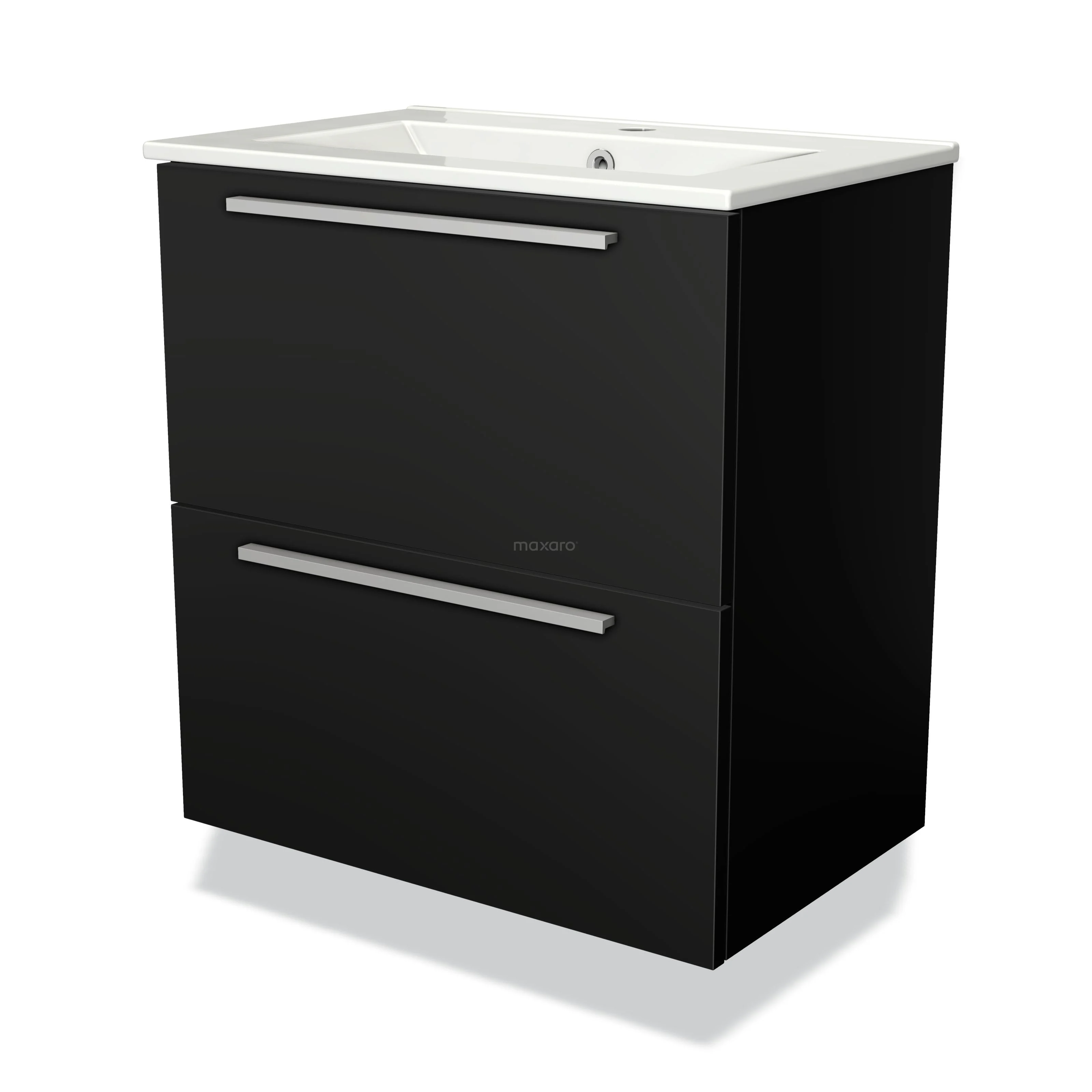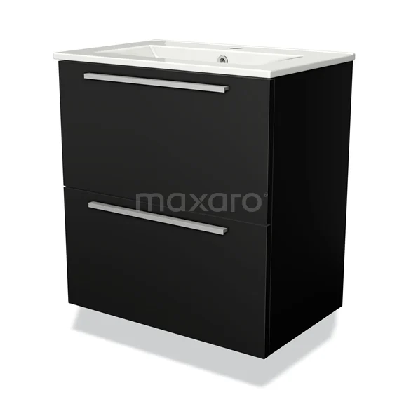 Modulo Slim Waschtische | 60 cm Matt Schwarz Flach front Keramik 2 übereinanderliegende Schubladen