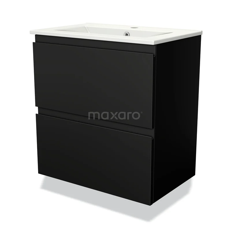 Modulo Slim Waschtische | 60 cm Matt Schwarz Grifflos front Keramik 2 übereinanderliegende Schubladen
