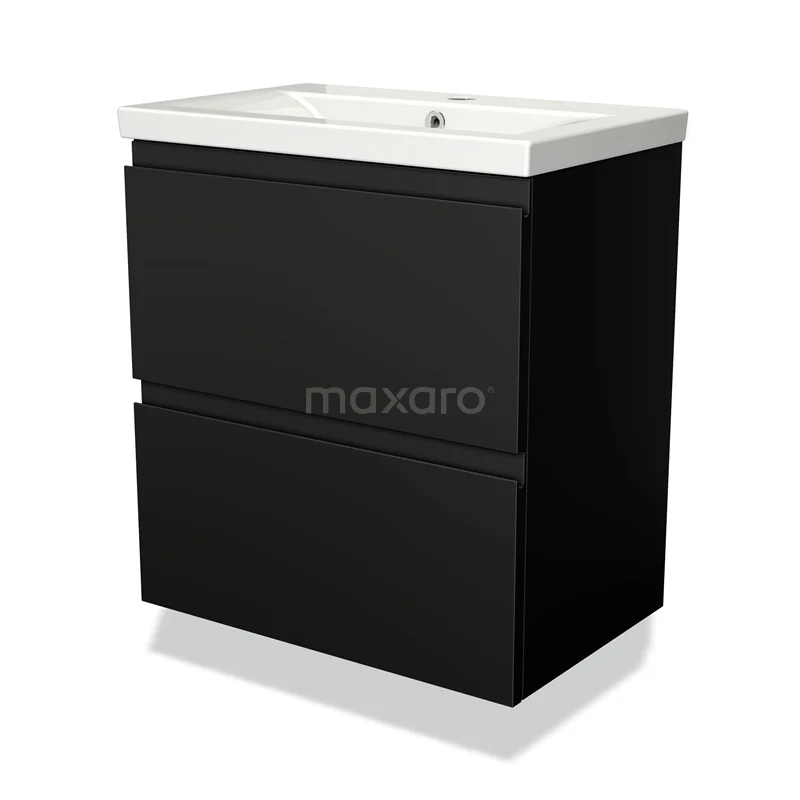 Modulo Slim Waschtische | 60 cm Matt Schwarz Grifflos front Keramik 2 übereinanderliegende Schubladen