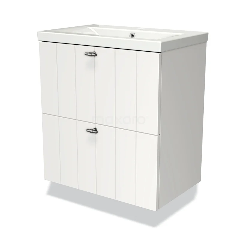 Modulo Slim Waschtische | 60 cm Matt Weiß Lamelle front Keramik 2 übereinanderliegende Schubladen