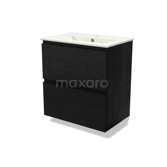 Modulo Slim Waschtische | 60 cm Schwarze Eiche Grifflos front Keramik 2 übereinanderliegende Schubladen