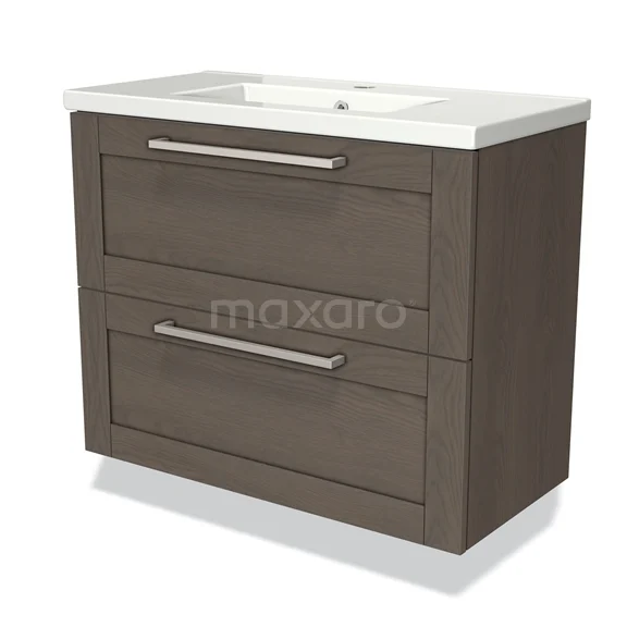 Modulo Slim Waschtische | 80 cm Dunkelbraune Eiche Rahmen front Keramik 2 übereinanderliegende Schubladen