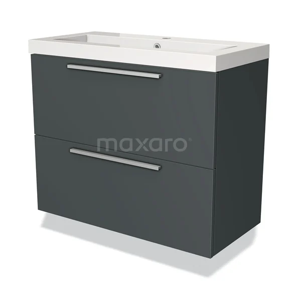 Modulo Slim Waschtische | 80 cm Dunkelgrau Flach front Mineralguss 2 übereinanderliegende Schubladen