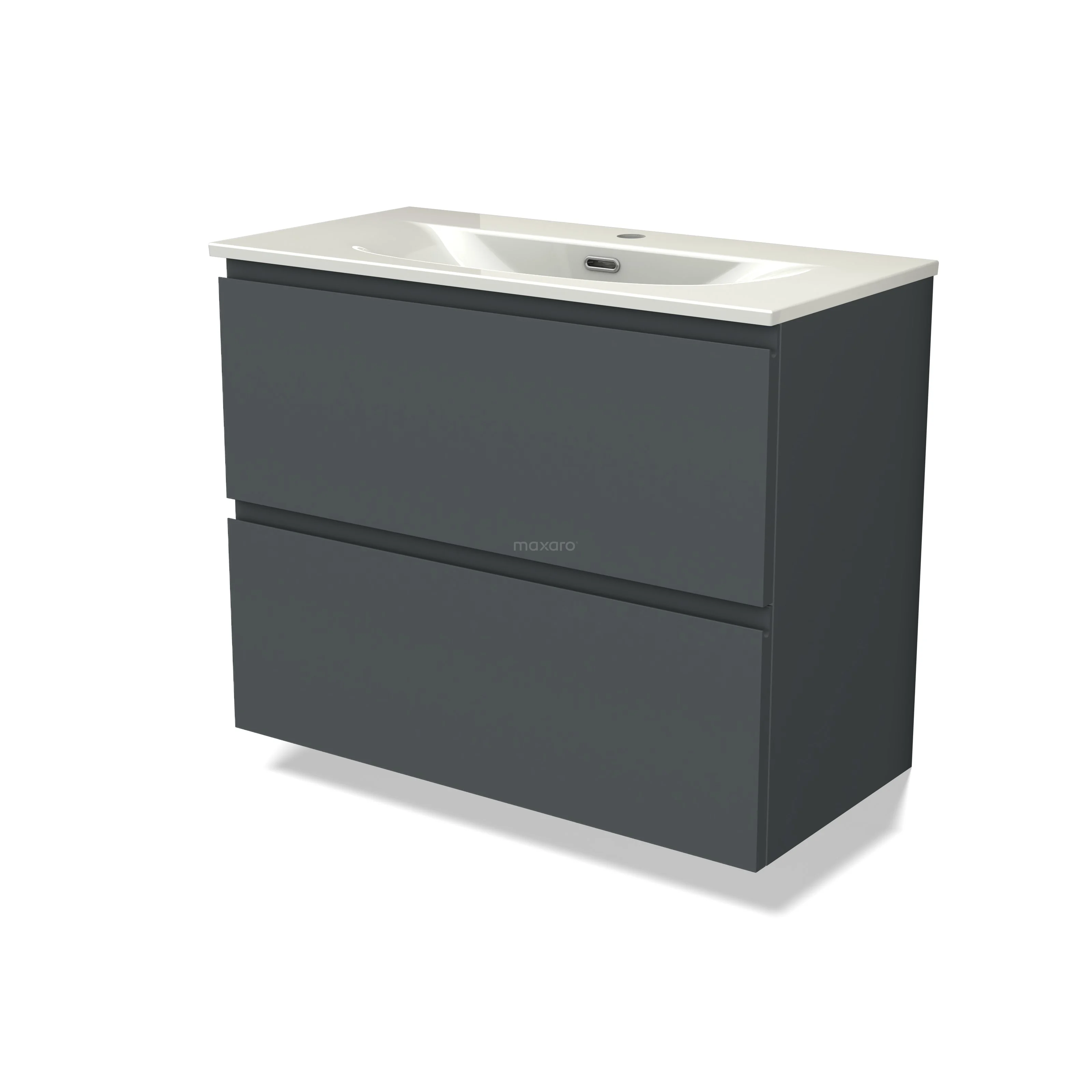 Modulo Slim Waschtische | 80 cm Dunkelgrau Grifflos front Keramik 2 übereinanderliegende Schubladen