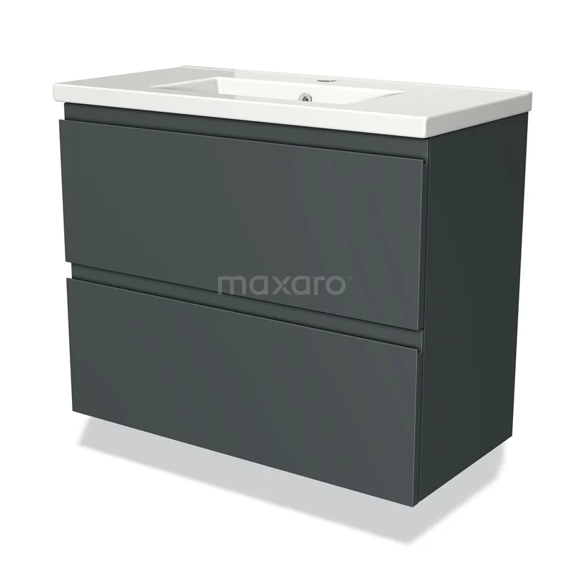 Modulo Slim Waschtische | 80 cm Dunkelgrau Grifflos front Keramik 2 übereinanderliegende Schubladen