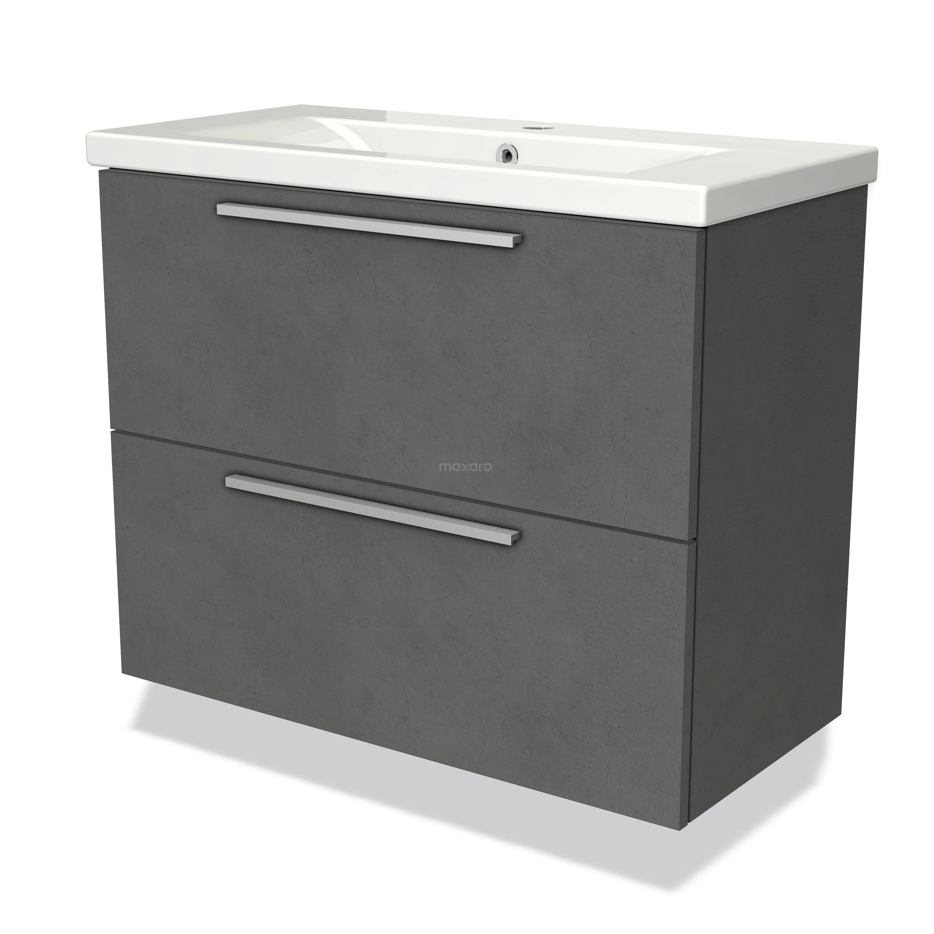 Modulo Slim Waschtische | 80 cm Dunkelgrauer Beton Flach front Keramik 2 übereinanderliegende Schubladen