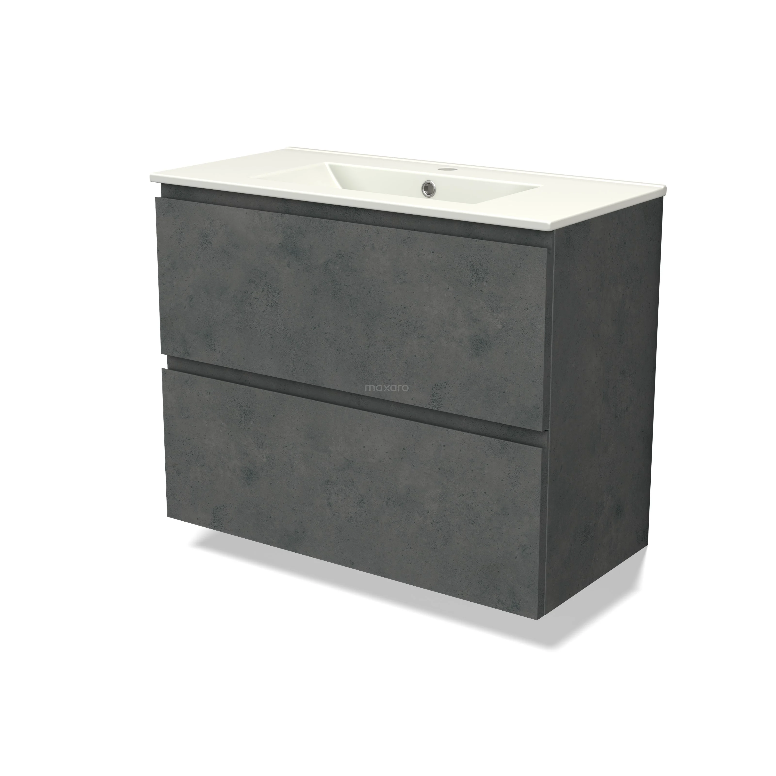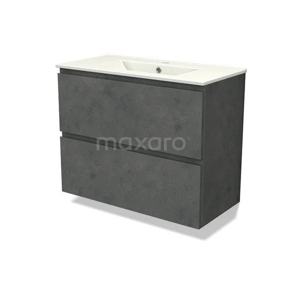 Modulo Slim Waschtische | 80 cm Dunkelgrauer Beton Grifflos front Keramik 2 übereinanderliegende Schubladen