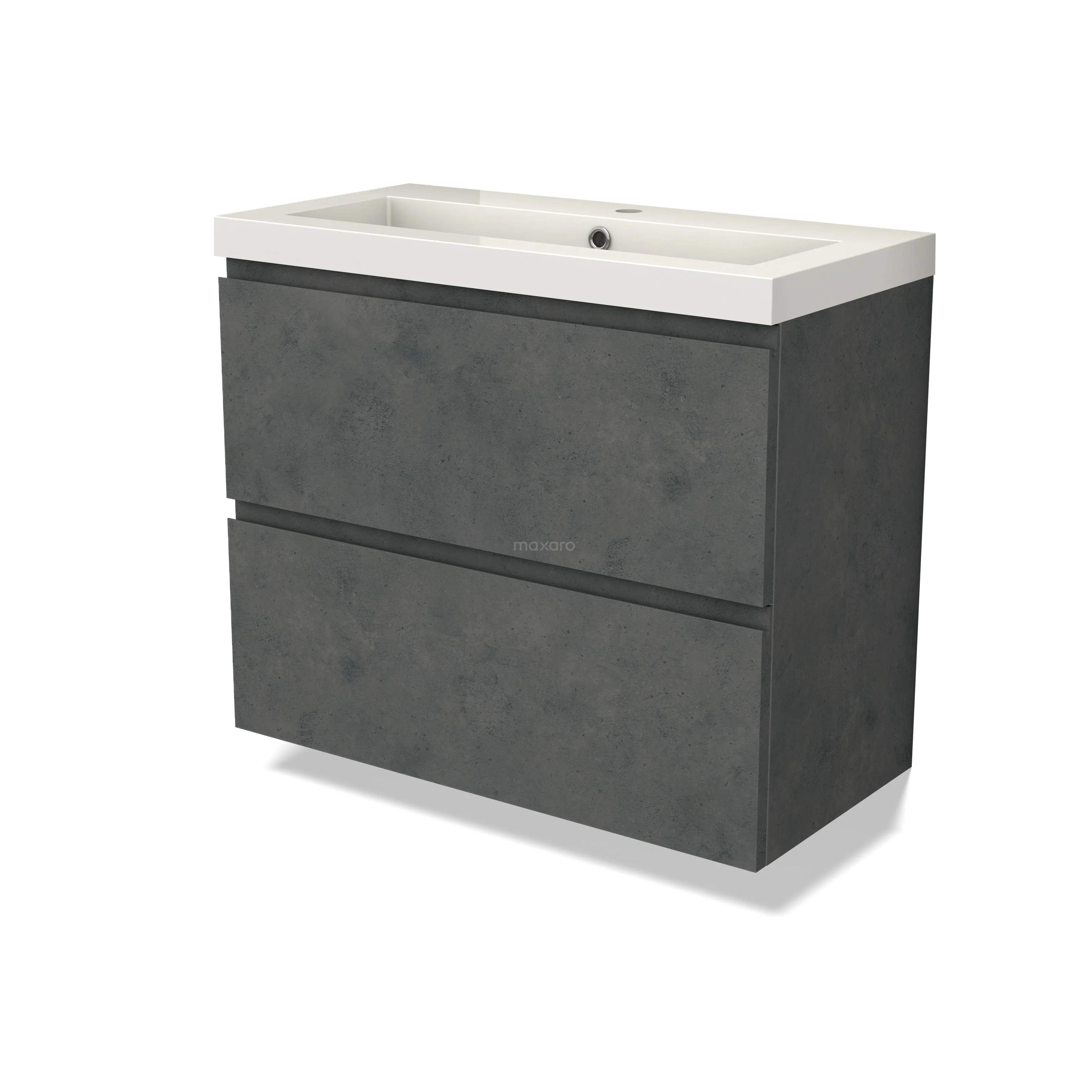 Modulo Slim Waschtische | 80 cm Dunkelgrauer Beton Grifflos front Mineralguss 2 übereinanderliegende Schubladen