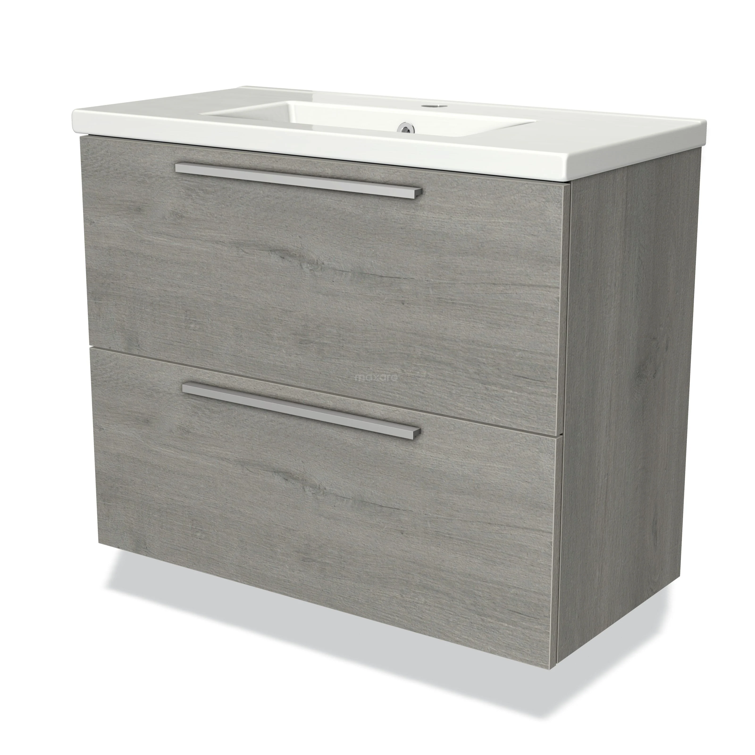 Modulo Slim Waschtische | 80 cm Graue Eiche Flach front Keramik 2 übereinanderliegende Schubladen