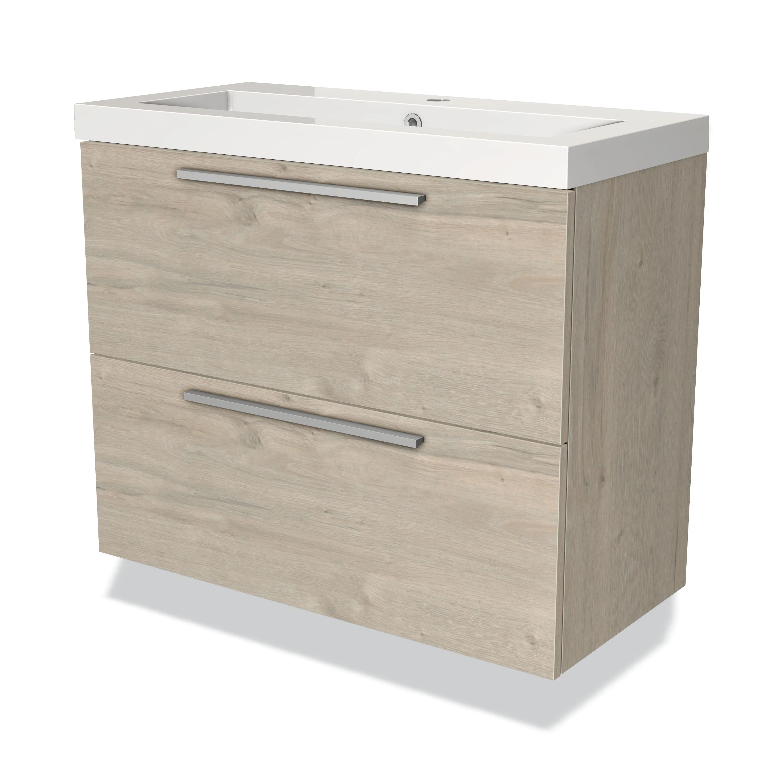 Modulo Slim Waschtische | 80 cm Hellgraue Eiche Flach front Mineralguss 2 übereinanderliegende Schubladen