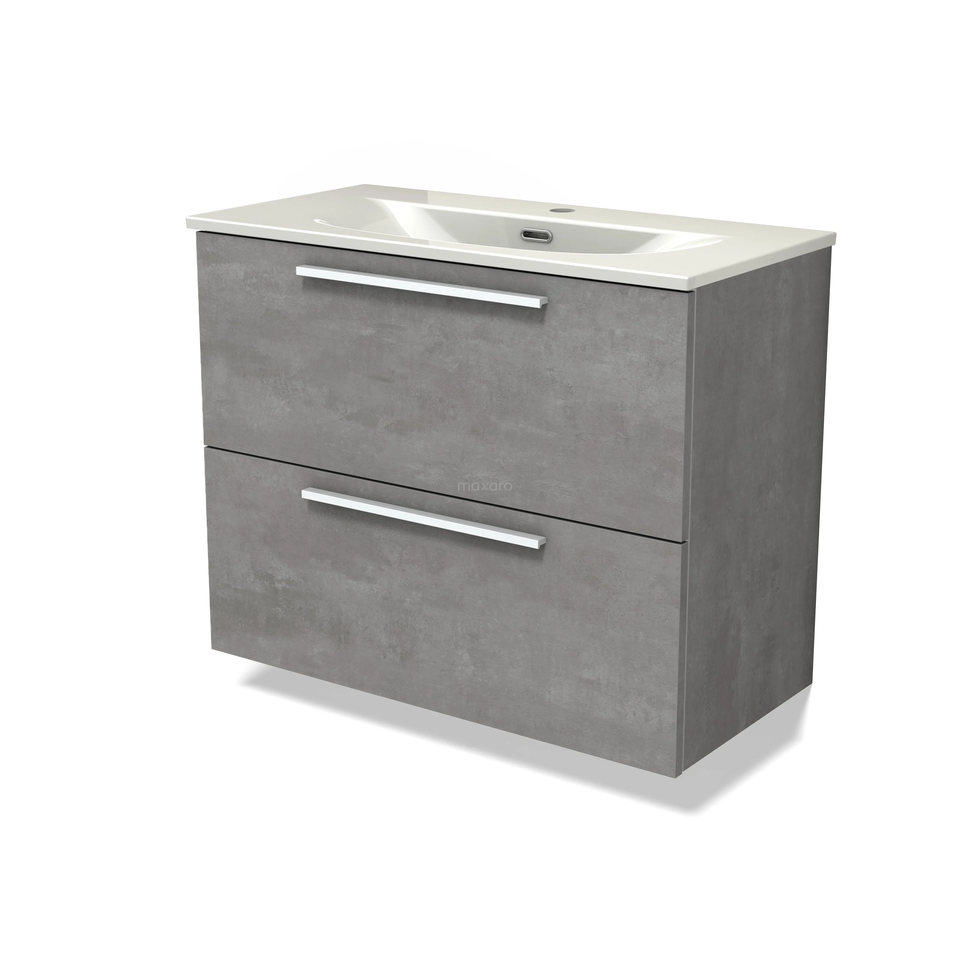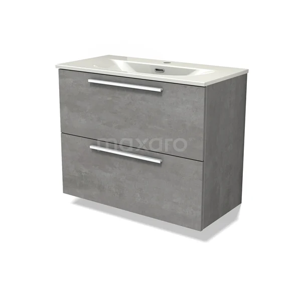 Modulo Slim Waschtische | 80 cm Hellgrauer Beton Flach front Keramik 2 übereinanderliegende Schubladen