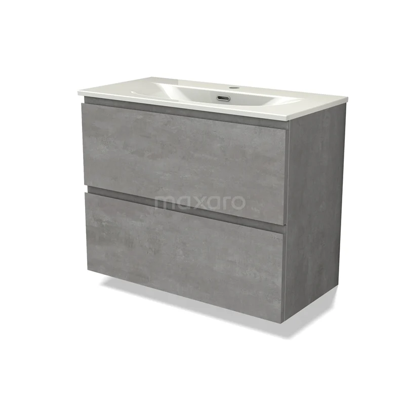 Modulo Slim Waschtische | 80 cm Hellgrauer Beton Grifflos front Keramik 2 übereinanderliegende Schubladen