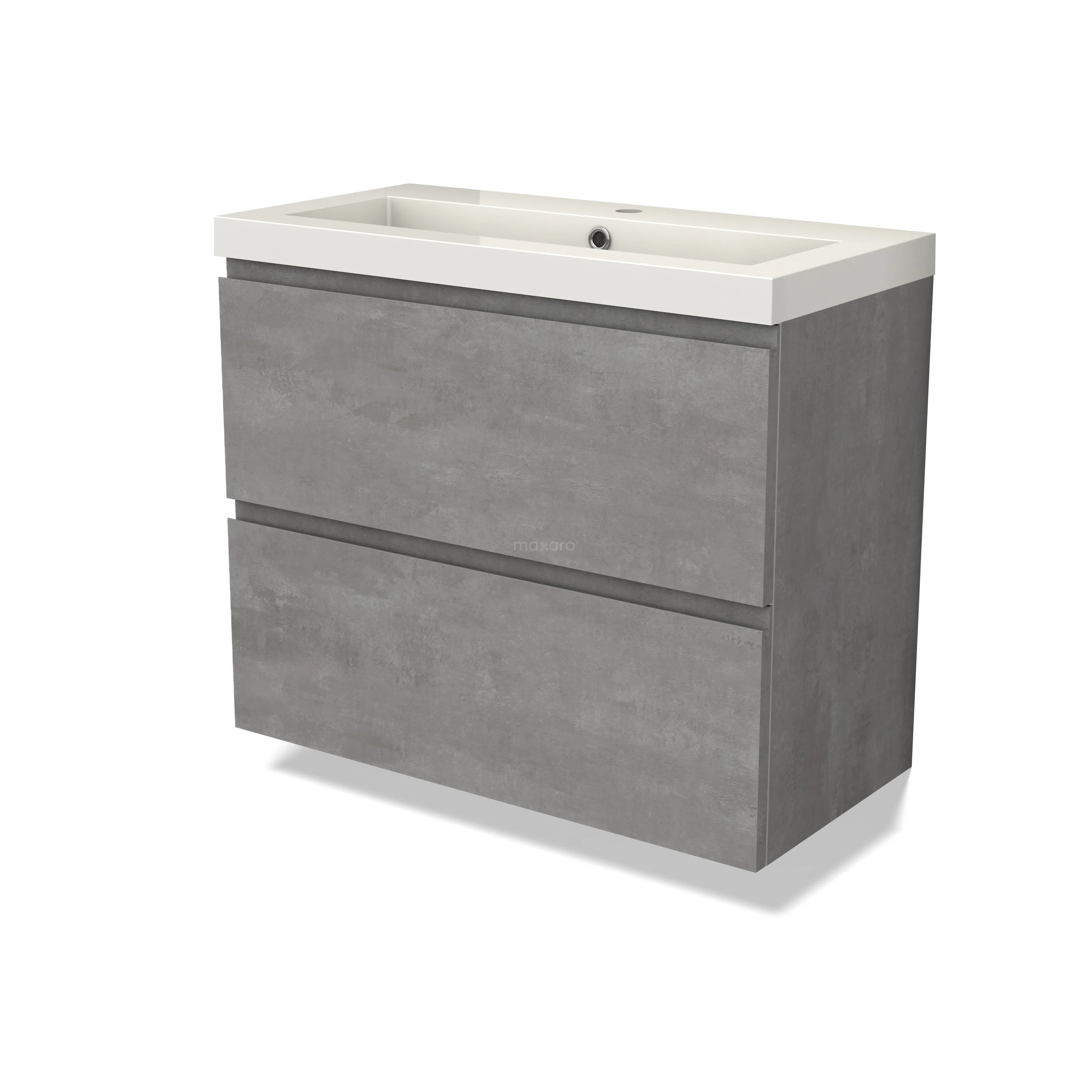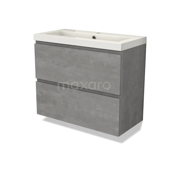 Modulo Slim Waschtische | 80 cm Hellgrauer Beton Grifflos front Mineralguss 2 übereinanderliegende Schubladen