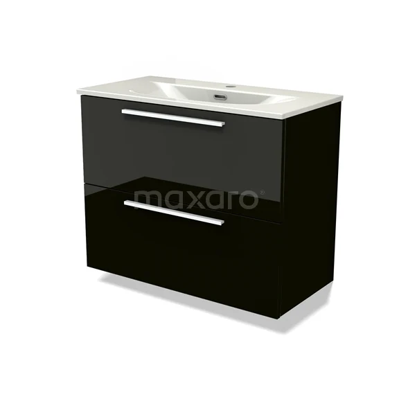 Modulo Slim Waschtische | 80 cm Hochglanz Schwarz Flach front Keramik 2 übereinanderliegende Schubladen