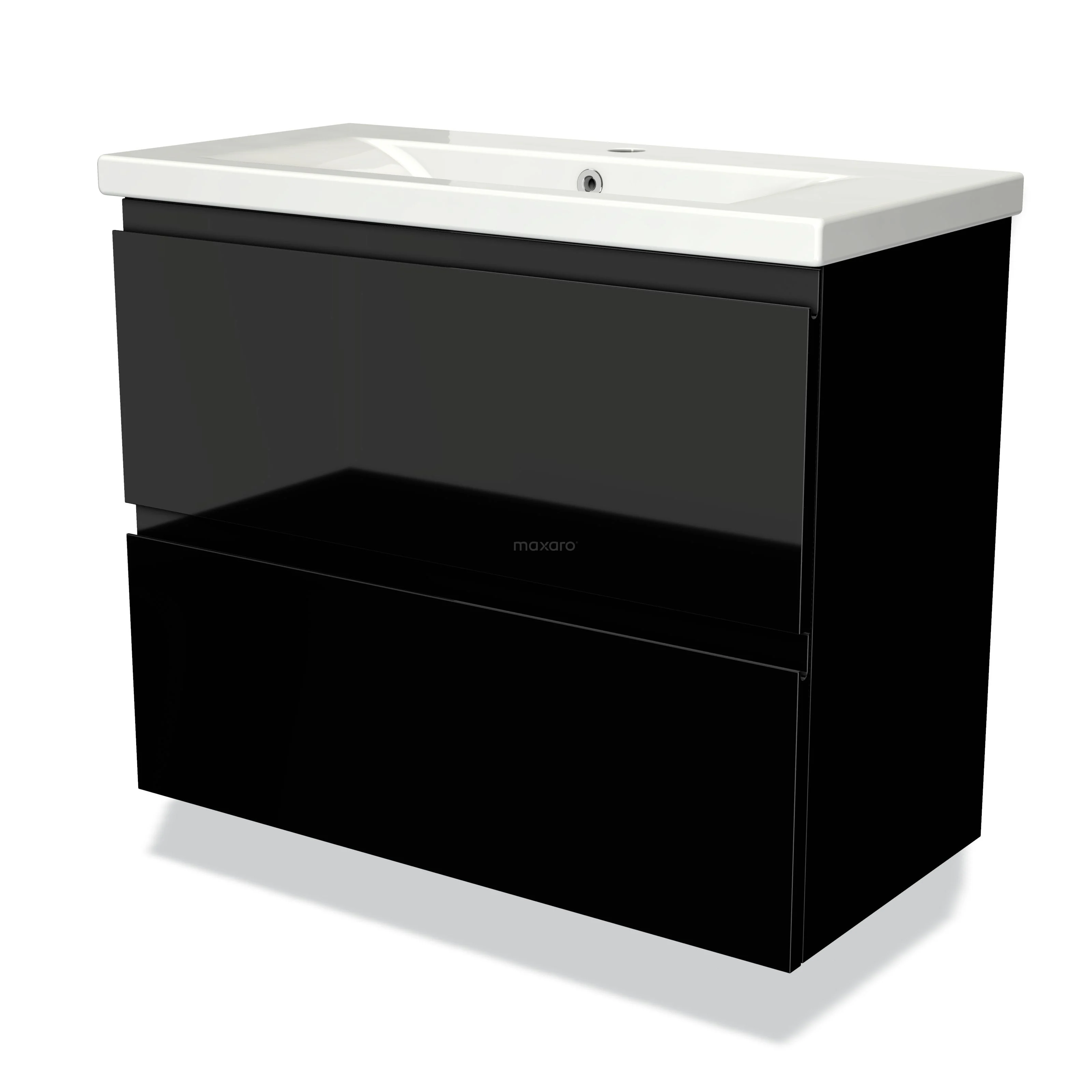 Modulo Slim Waschtische | 80 cm Hochglanz Schwarz Grifflos front Keramik 2 übereinanderliegende Schubladen
