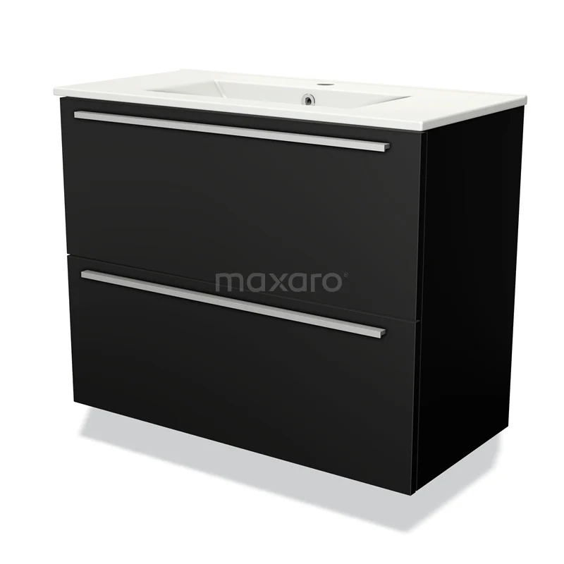 Modulo Slim Waschtische | 80 cm Matt Schwarz Flach front Keramik 2 übereinanderliegende Schubladen