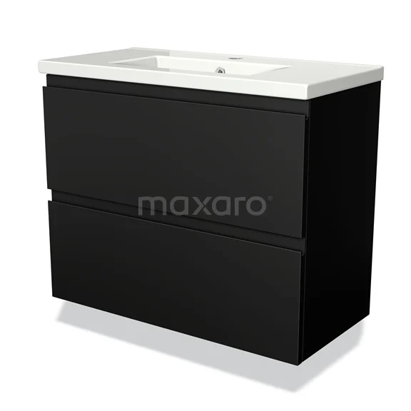 Modulo Slim Waschtische | 80 cm Matt Schwarz Grifflos front Keramik 2 übereinanderliegende Schubladen