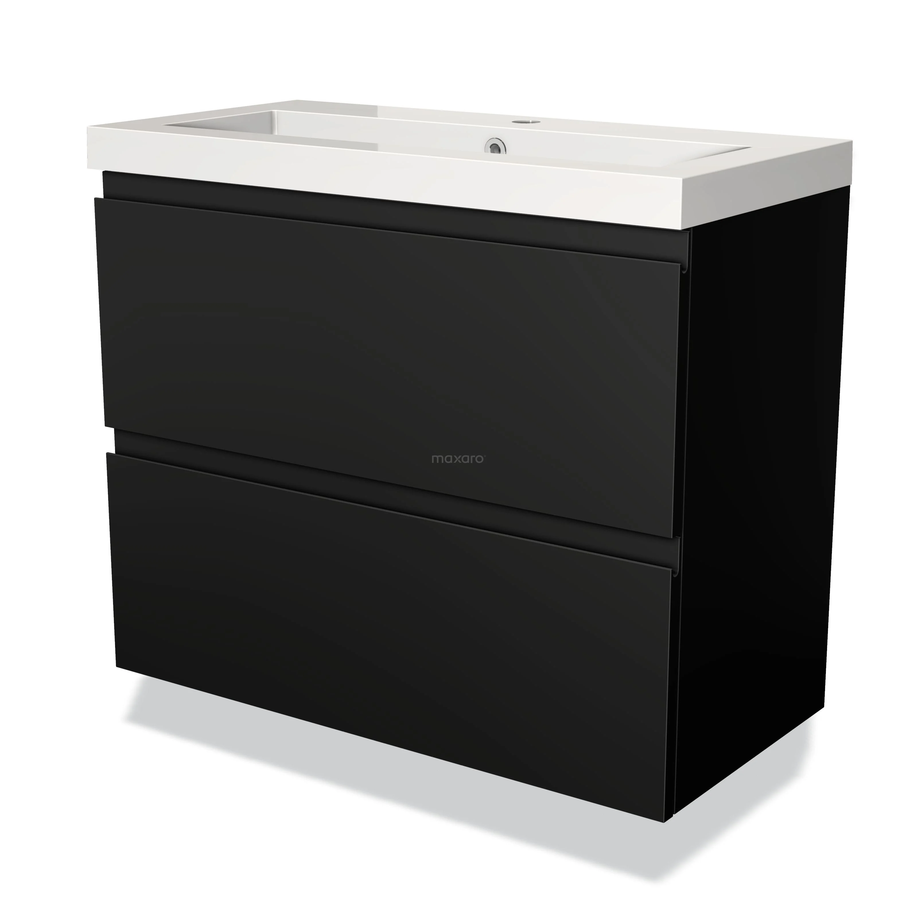 Modulo Slim Waschtische | 80 cm Matt Schwarz Grifflos front Mineralguss 2 übereinanderliegende Schubladen