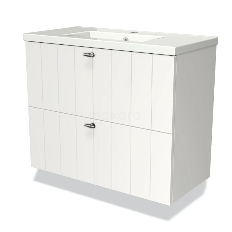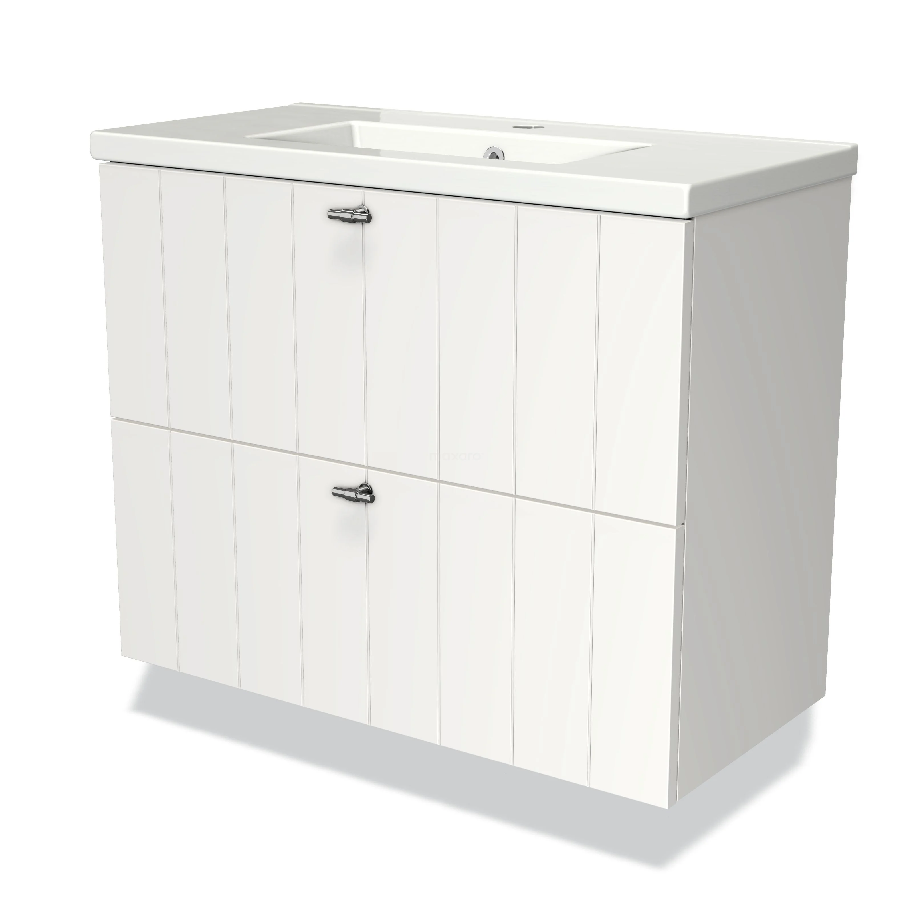 Modulo Slim Waschtische | 80 cm Matt Weiß Lamelle front Keramik 2 übereinanderliegende Schubladen