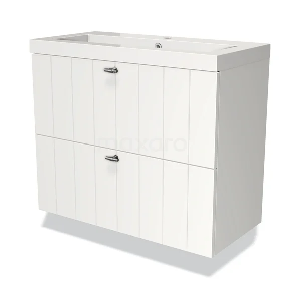 Modulo Slim Waschtische | 80 cm Matt Weiß Lamelle front Mineralguss 2 übereinanderliegende Schubladen