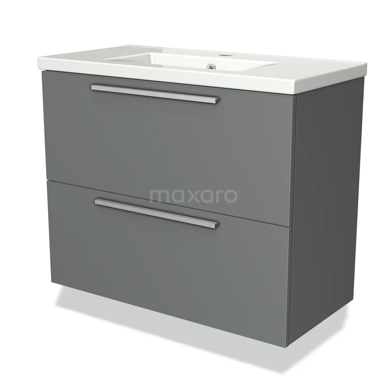 Modulo Slim Waschtische | 80 cm Mittelgrau Flach front Keramik 2 übereinanderliegende Schubladen