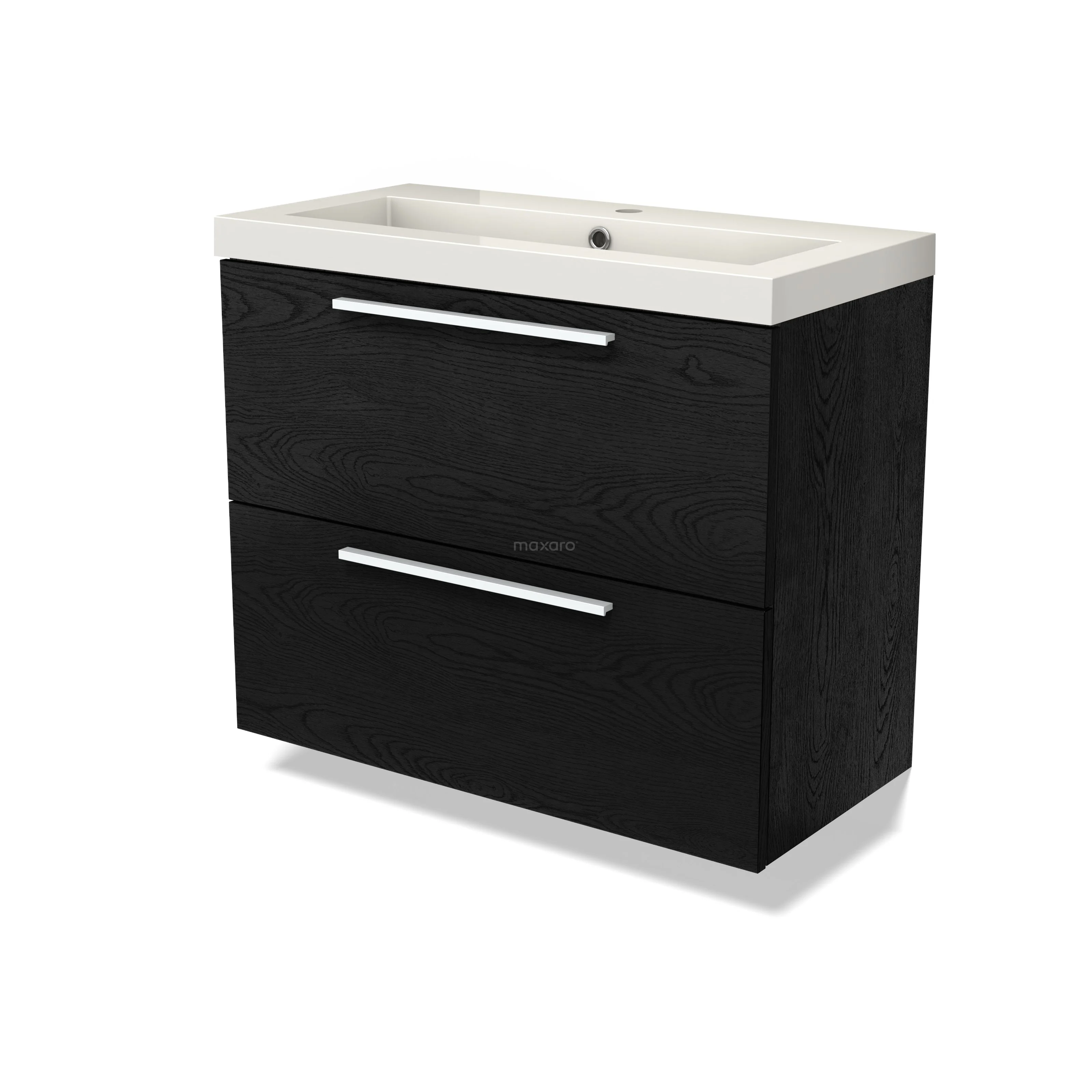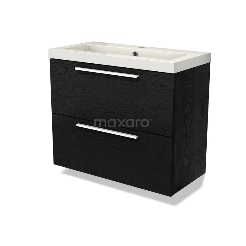 Modulo Slim Waschtische | 80 cm Schwarze Eiche Flach front Mineralguss 2 übereinanderliegende Schubladen