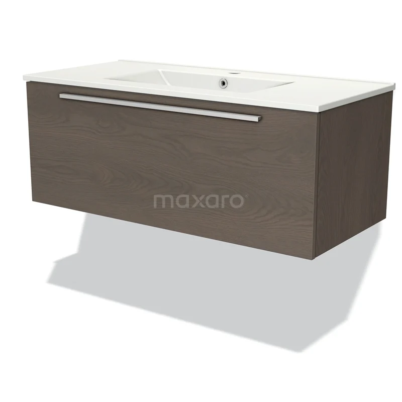 Modulo Waschtische | 100 cm Dunkelbraune Eiche Flach front Keramik 1 Schublade