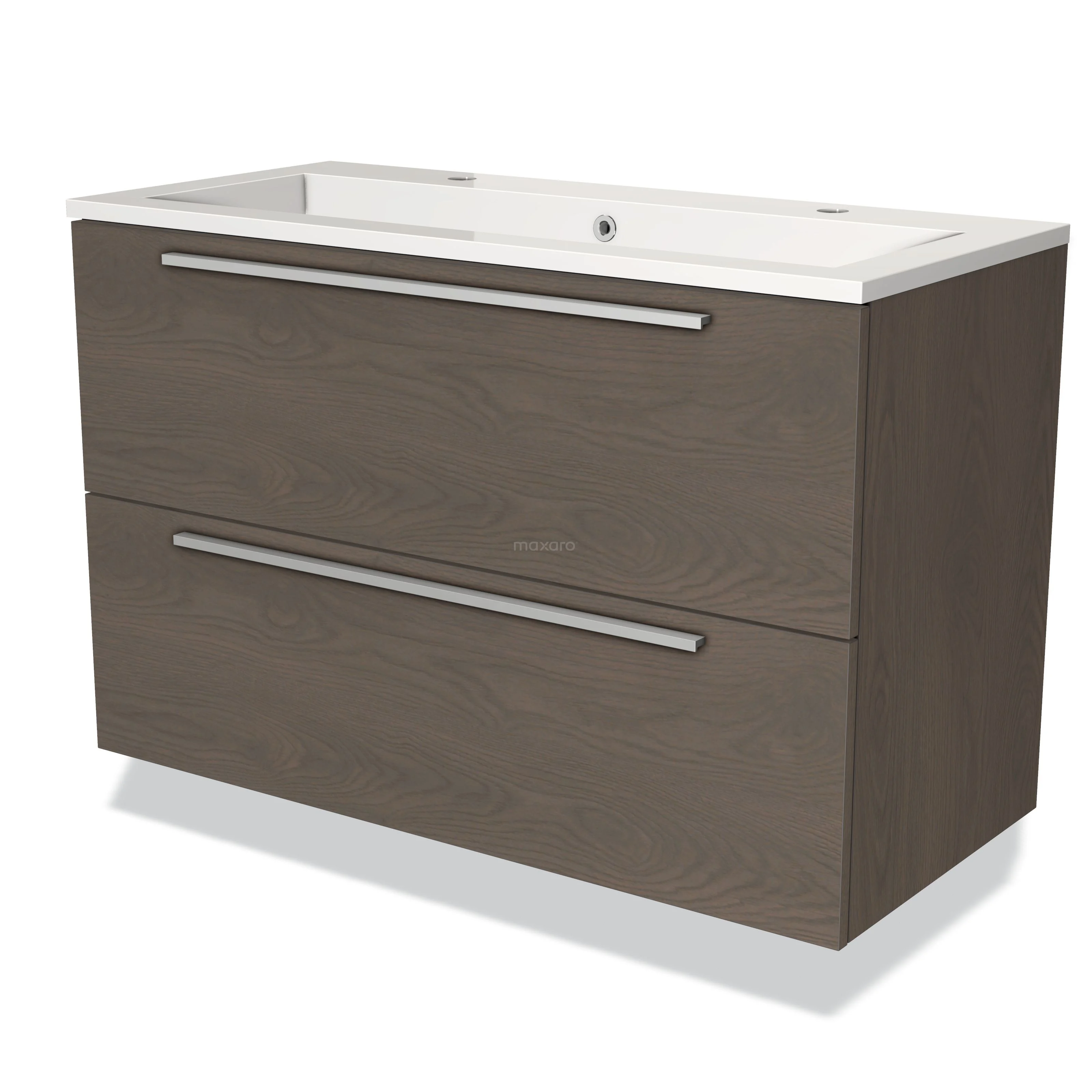 Modulo Waschtische | 100 cm Dunkelbraune Eiche Flach front Mineralguss 2 übereinanderliegende Schubladen